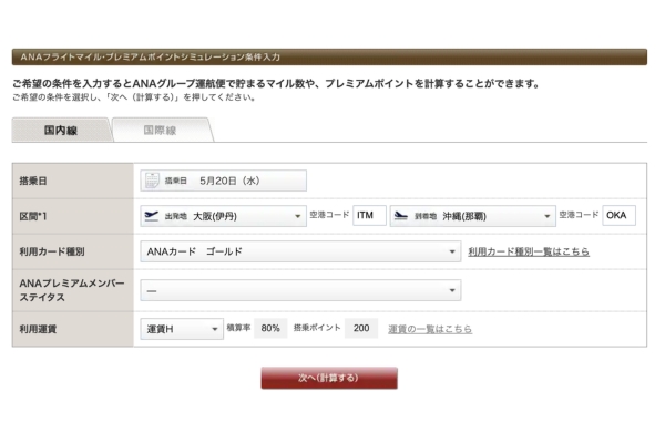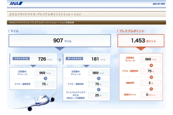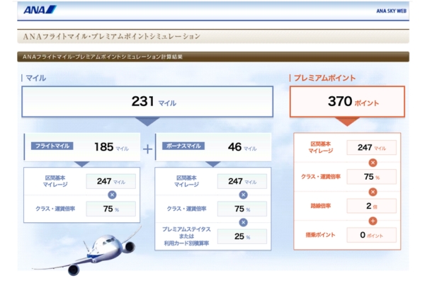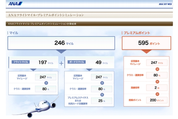 ANAフライトマイル・プレミアムポイントシミュレーション