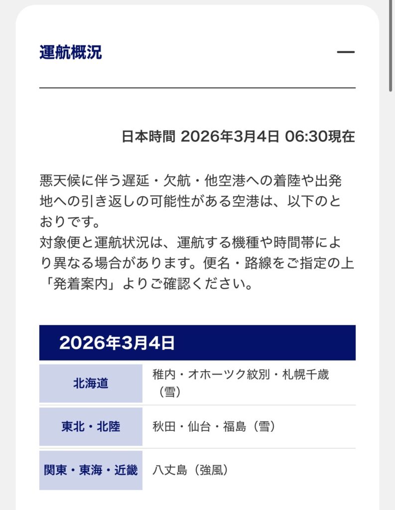 ANAの運行状況を確認してみると