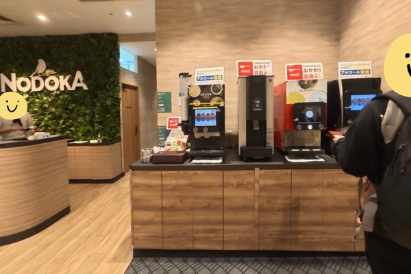 ラウンジ内ではドリンクバーが無料。