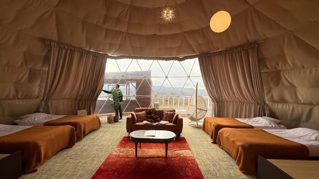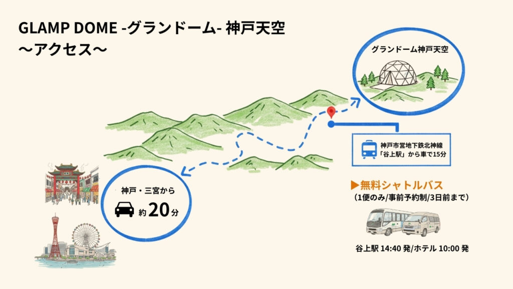 【グランドーム神戸天空】三宮から車で20分。源泉かけ流し大浴場付きのグランピング施設|湯ワークにも◎